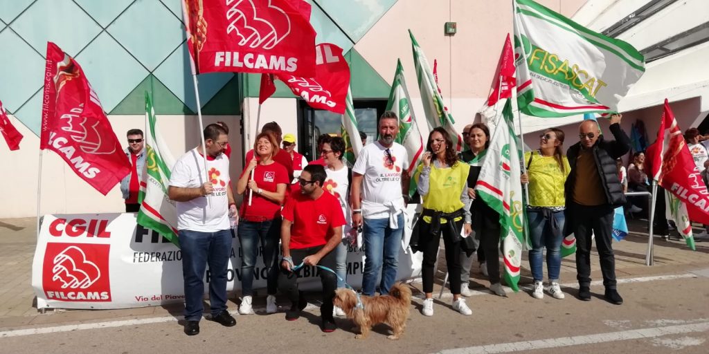 In concomitanza con la riunione nazionale al Mise, i lavoratori Auchan hanno incrociato le braccia.