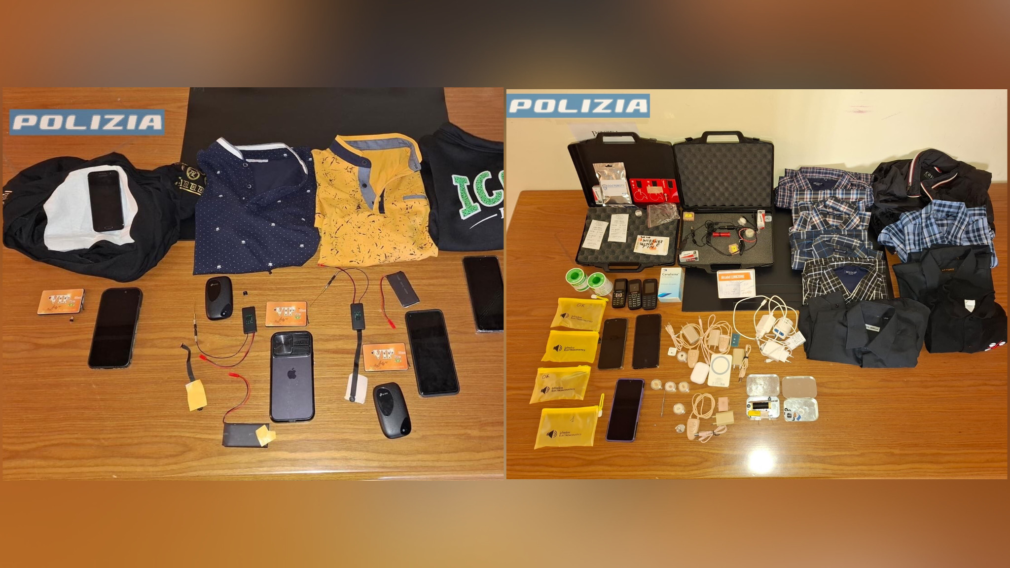 Durante la perquisizione dell’autovettura, venivano rinvenuti altri cellulari, sim card, numerosi micro auricolari e microtelecamere, nastro adesivo e varie camicie, della stessa tipologia di quella rinvenuta indosso al ragazzo.